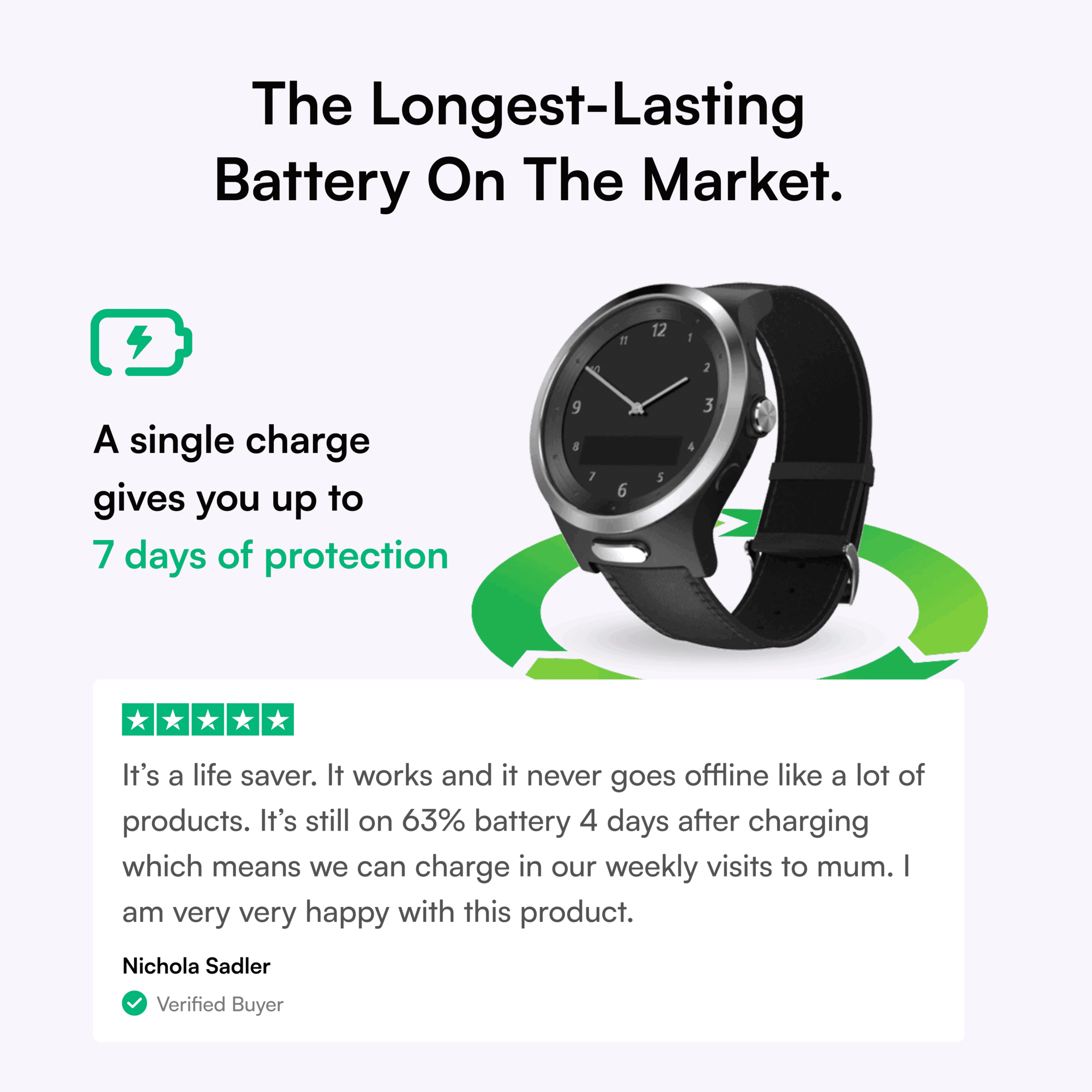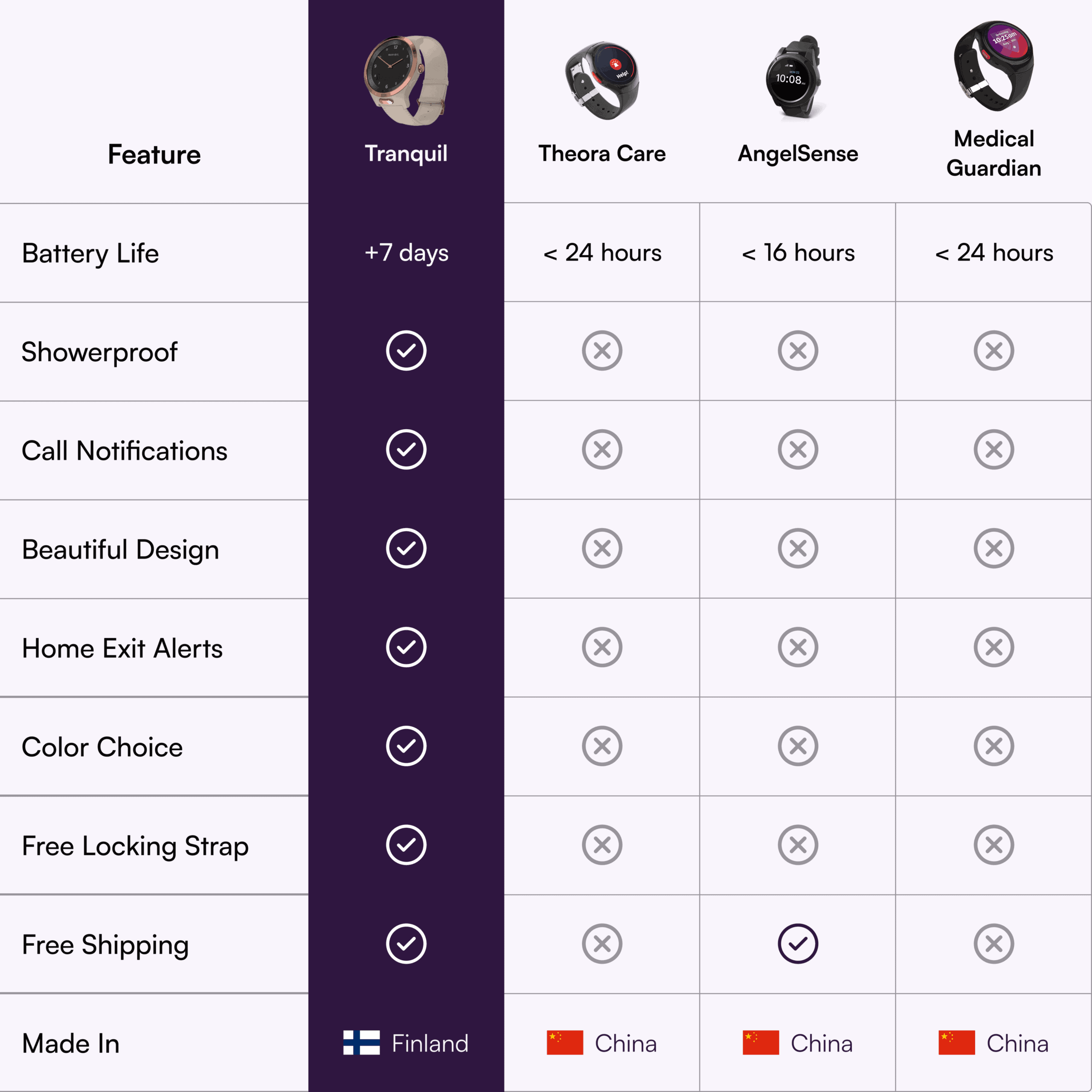 “My 83-year-old mother has vascular dementia, and the Tranquil watch has helped her maintain her independence while giving our family real comfort and peace of mind.”