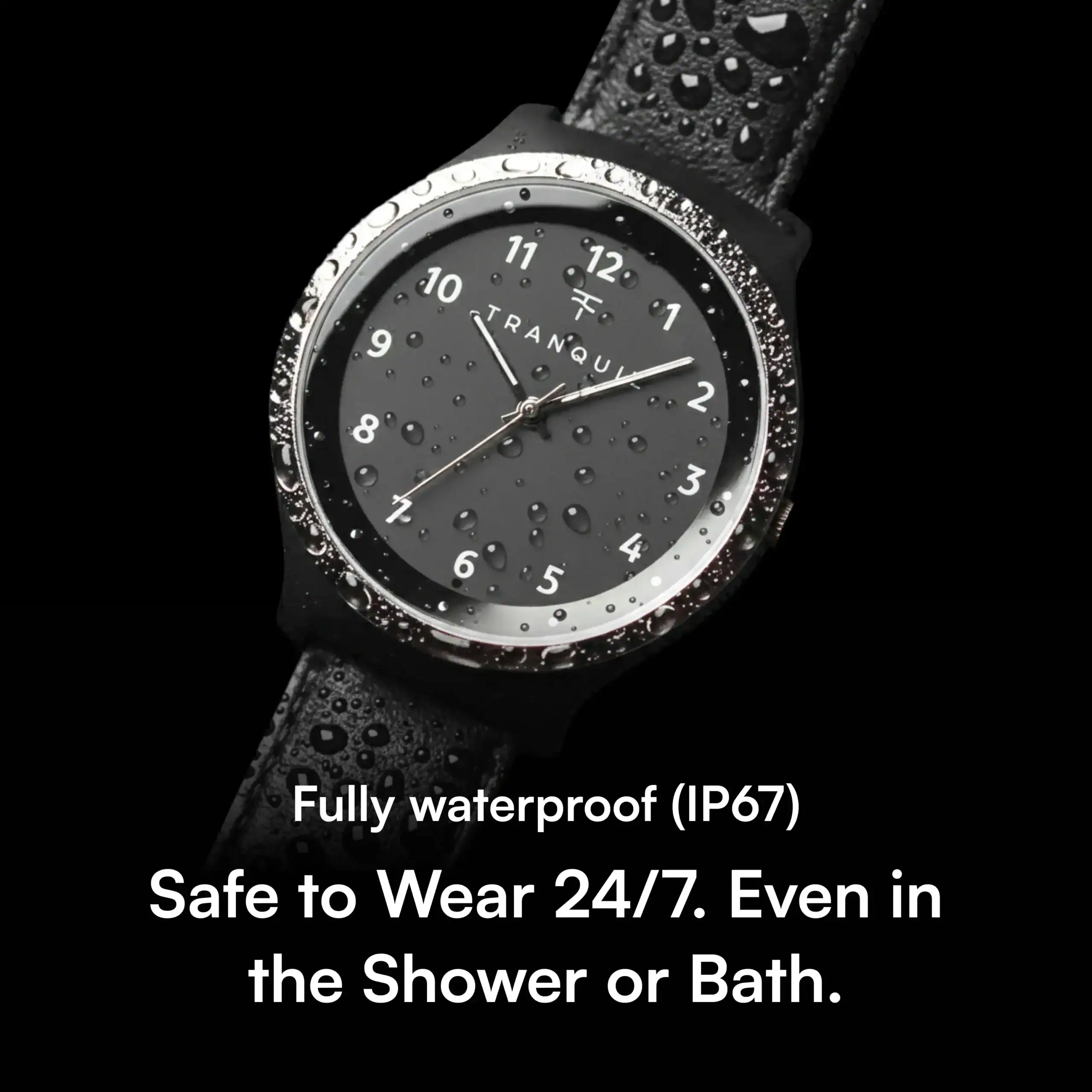The Tranquil Watch can be worn while showering, bathing or swimming.